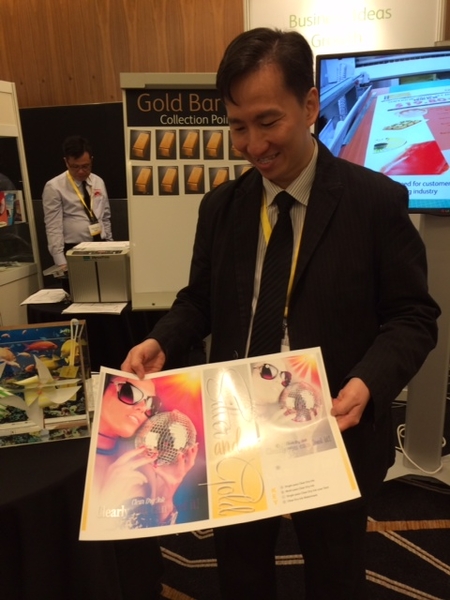 Jarrod Chong, Consultant en développement de l'activité senior FX, est convaincu par le papier synthétique d'Allemagne. Dans ses mains, il tient du Robuskin XTP 150 B/S CL imprimé brillant.